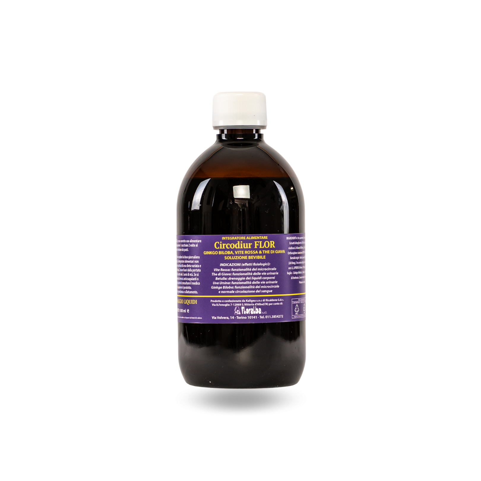 Estratti idroglicerici di Vite Rossa foglie-Vitis vinifera L.Folium(4860mg), The di Giava foglie- Orthosiphon stamineus BENTH folium (3510mg), Betulla foglie -Betula pendula ROTH folium (2610mg), Uva ursina foglie-Arctostaphylos uva ursi (L_)SPRENG folium (2160mg), Ginkgo biloba foglie – Ginkgo biloba L. folium (2160mg), sciroppo di fruttosio, Conservanti: Sodio benzoato, Potassio sorbato.