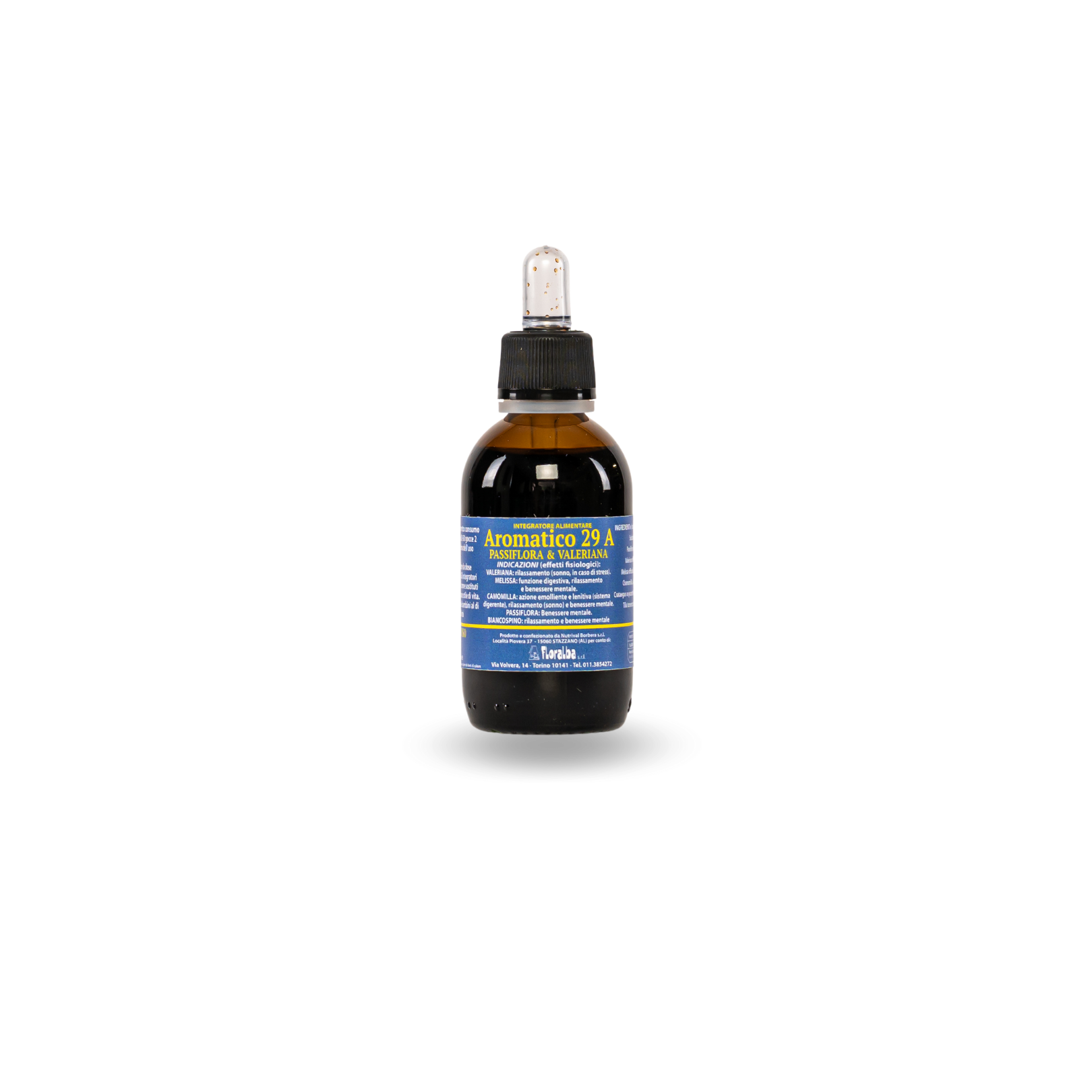 Chamomilla L.- Camomilla capolini- (330 mg), Crataegus oxyacantha Medicus – Biancospino fori (330mg), Tillia tomentosa MOENCH – Tiglio fiori (330mg).